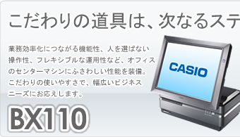 | オフィスの限られたスペースを有効的に活用できるコンパクトボディを実現。タッチパネル液晶を使っての画面直接入力も健在、スムースな業務処理をサポートします。シンプルなビジネス専用機として、BX110SV《コアボックス》、BX110の子機として多彩な運用が可能です。 | |